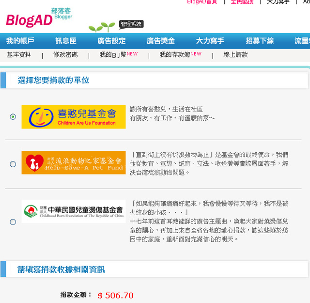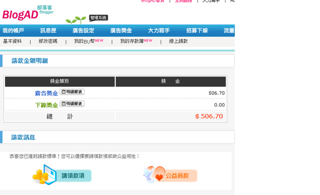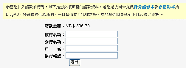 驚覺BlogAD的廣告獎金已達請款的門檻