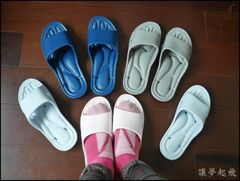 透氣美學家居拖鞋共有四種顏色~粉、水藍、深藍、灰